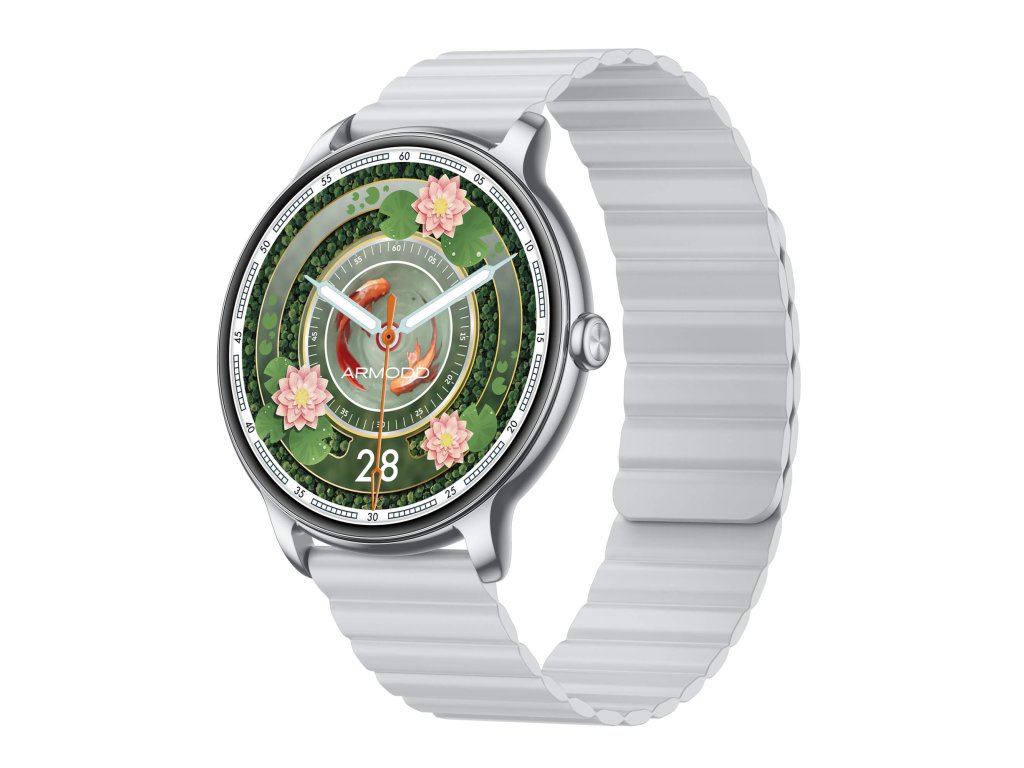 Ceasul inteligent pentru ARMODD Slim îmbină tehnologia de ultimă generație cu un design elegant. Datorită corpului său subțire, se potrivește perfect chiar și pe încheieturile feminine mai delicate. Display-ul AMOLED de 1,32″ cu funcție always-on oferind culori vii și o imagine clară, indiferent dacă ești în lumina puternică a soarelui sau în întuneric. Designul premium și elegant al ceasului inteligent se remarcă în orice context. Fie că ești în căutarea unui accesoriu stilat sau a unui asistent practic de zi cu zi, ARMODD Slim te va cuceri de la prima vedere.
