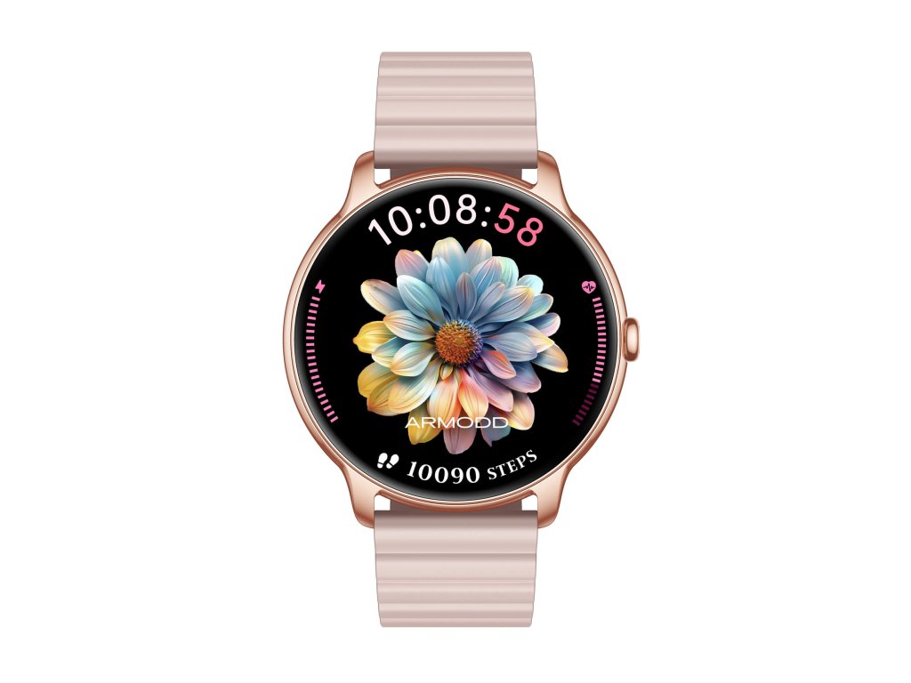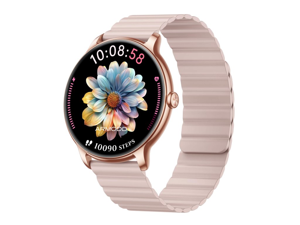 Ceasul inteligent pentru ARMODD Slim îmbină tehnologia de ultimă generație cu un design elegant. Datorită corpului său subțire, se potrivește perfect chiar și pe încheieturile feminine mai delicate. Display-ul AMOLED de 1,32″ cu funcție always-on oferind culori vii și o imagine clară, indiferent dacă ești în lumina puternică a soarelui sau în întuneric. Designul premium și elegant al ceasului inteligent se remarcă în orice context. Fie că ești în căutarea unui accesoriu stilat sau a unui asistent practic de zi cu zi, ARMODD Slim te va cuceri de la prima vedere.